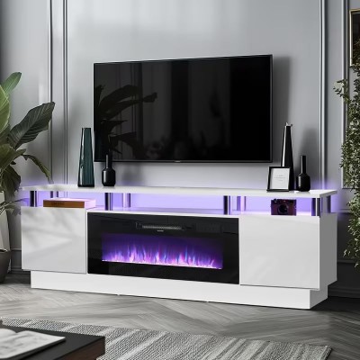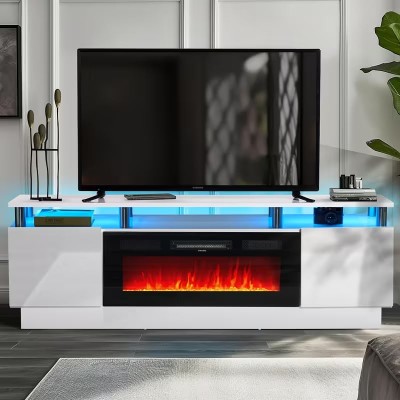 покрытие > Магазин часов > Местный складТВ-консоль с электрической плитой 36 дюймов, развлекательный центр со светодиодной подсветкой, двухъярусная консольная подставка для ТВ до 80 дюймов, консоль для гостиной, (белый/черный)