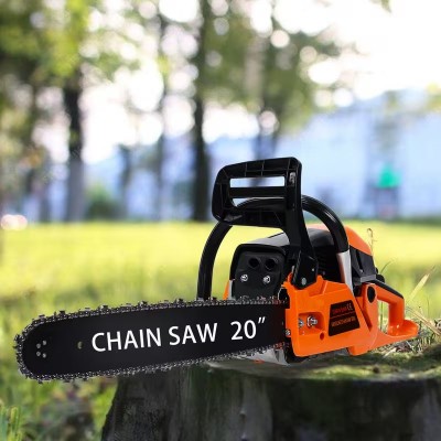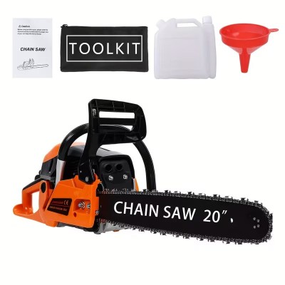 покрытие > бытовая техника > Местный складБензопила 58 куб. см, 20-дюймовая шина, двухтактный двигатель, мощность 2200 Вт, низкая отдача цепи, удобная нескользящая рукоятка, автоматическая масленка для колки дров и валки деревьев во дворе.