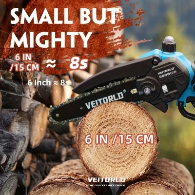 покрытие > бытовая техника > Беспроводная мини-бензопила 6 дюймов | ручная пила с аккумулятором 21 В с двумя перезаряжаемыми батареями | легкая электрическая бензопила для обрезки деревьев, распиловки древесины и садовых работ | идеальна для уличных проектов