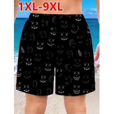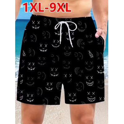 Мужские шорты большого размера 9XL пляжные | забавный 3D-принт с черными лицами и швами, со шнурком, обычная посадка, слегка тянущаяся ткань, большой размер 45