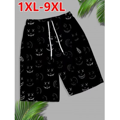 Мужские шорты большого размера 9XL пляжные | забавный 3D-принт с черными лицами и швами, со шнурком, обычная посадка, слегка тянущаяся ткань, большой размер 45
